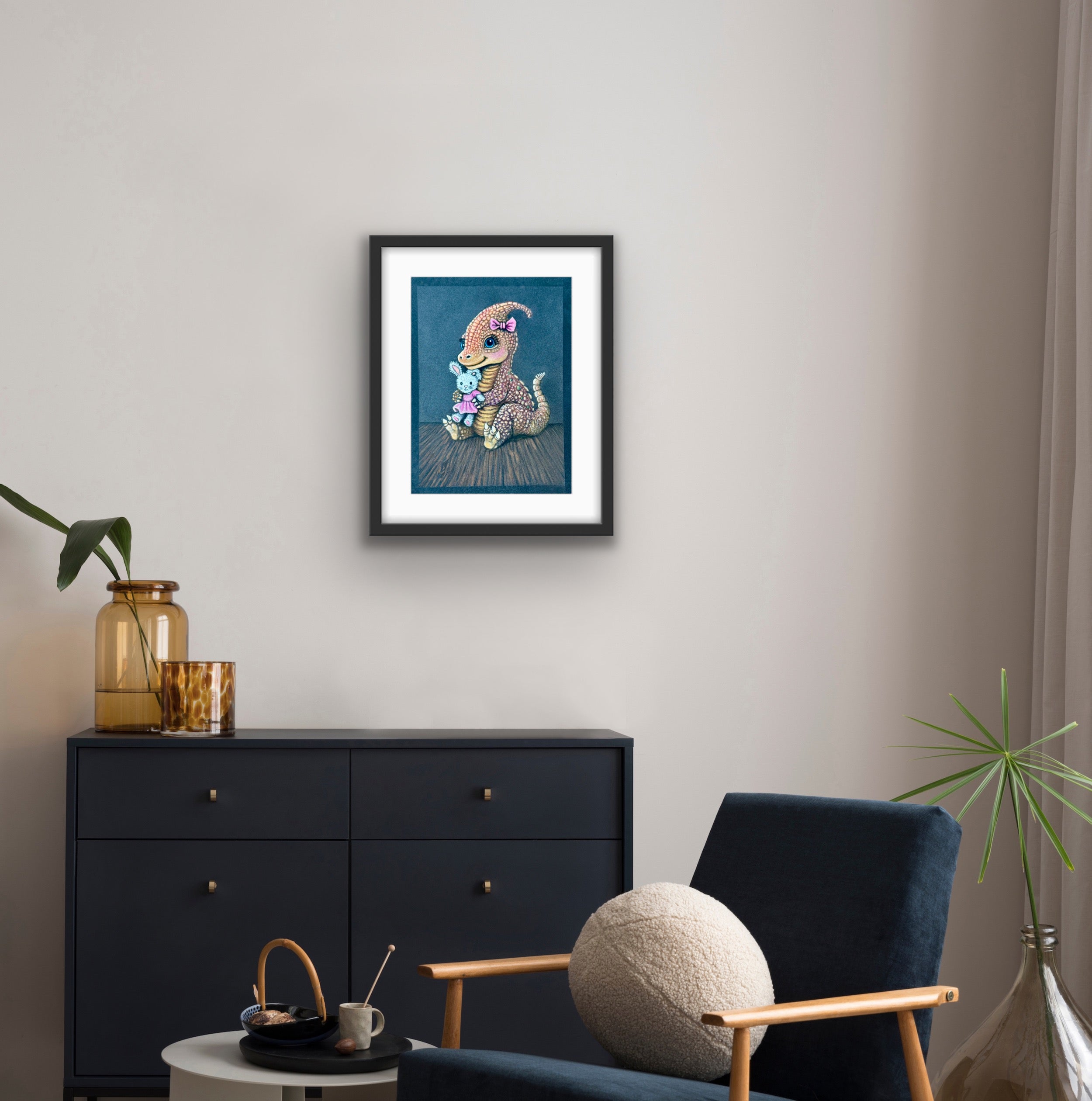 Baby Elephant Giclee Print Hand Drawn Pastel Art 10x12 - 8x10 Print Area Signed and Numbered